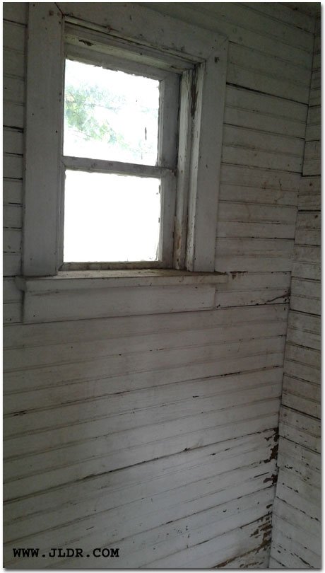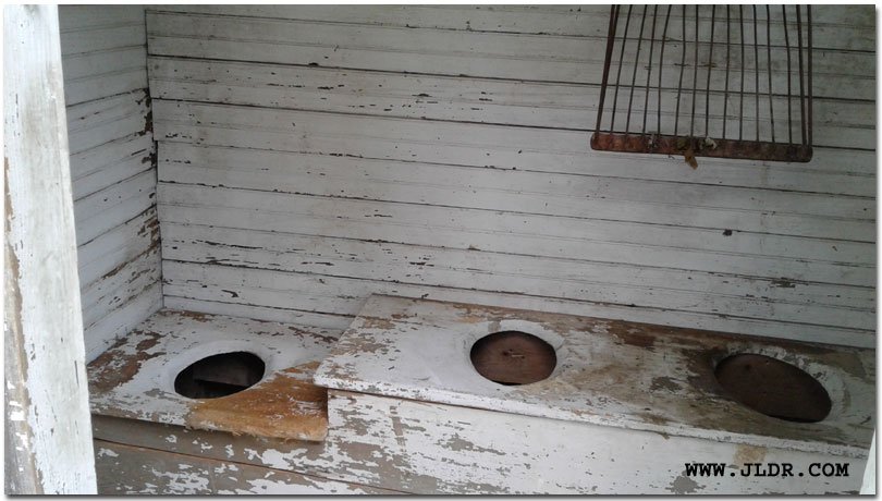 Inside of the Outhouse that was saved from scrap. Notice the lower hole for children