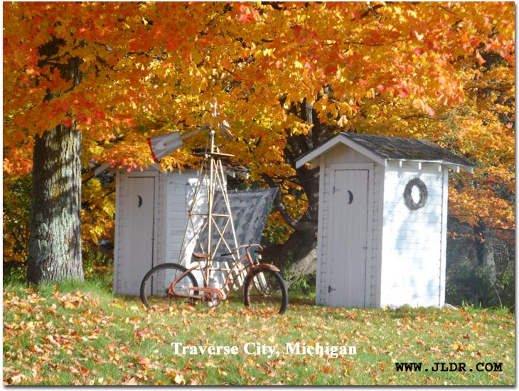 Old School Outhouses located in Traverse City, Michigan.